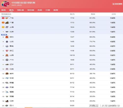 CBA排名大变!广东登顶,北京断崖下滑,广州第10辽宁难保季后赛