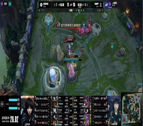 后期HOYA韦鲁斯下路推线被Leave烬架狙射杀,NIP强吃大龙得手,经济优势来到5k。中路团战,Assum芸阿娜爆轰三杀,NIP打出1换4一波推平EDG基地先下一城。