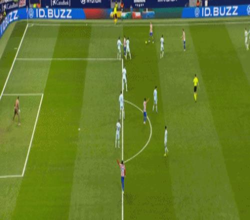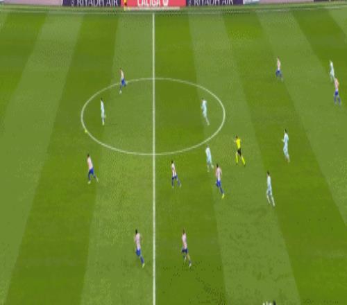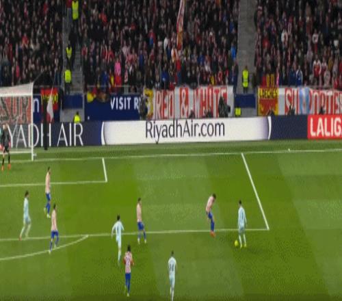 第83分钟,格列兹曼鞋尖越位,转播给出半自动越位系统画面