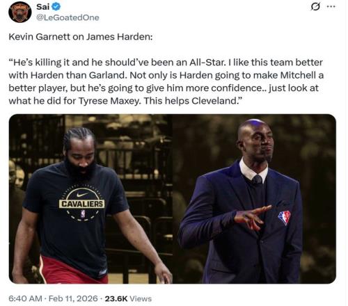 NBA名宿加内特也持有相同观点,认为哈登无论是在快船的表现,还是加盟后骑士对于米切尔的帮助,都让其有资格入选全明星。