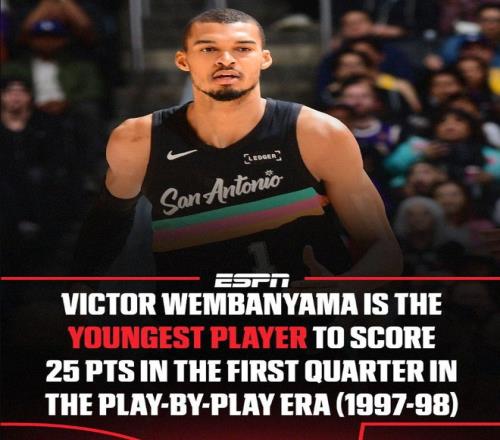 而最让人惊叹的,还要当属圣安东尼奥马刺队的最强状元文班亚马。就在刚刚结束的客场对阵湖人一战,文班亚马在仅仅26分钟的时间里,20投13中,三分6中4,罚球12中10,狂轰40分12篮板2助攻2抢断1盖帽,不单单刷爆了队史纪录,更是NBA历史首位在26分钟内砍下至少40分12篮板的球员,一战封神!