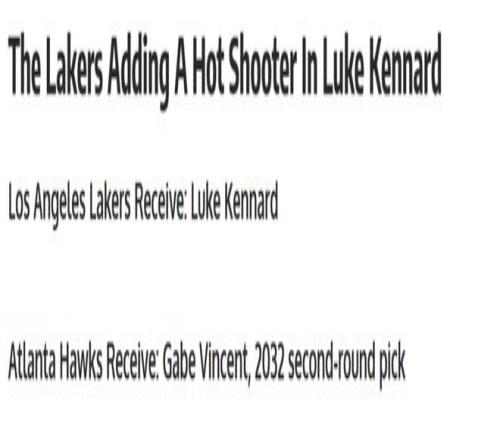 与休赛期仅完成小幅操作一样,在这个交易截止日湖人队依旧十分谨慎,但又一次完成神操作,低价拿下肯纳德这名急需的精英射手。