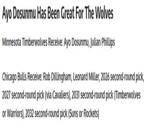 公牛得到:迪林厄姆+伦纳德-米勒+4个次轮签。