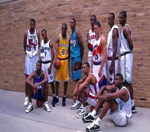 好了,这就是这张经典照片上所有的11名球员,有人可能就奇怪了,为何这一届新秀里最重要的人,状元秀阿伦-艾弗森不在上面?