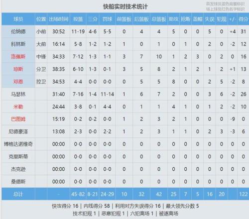 希望伦纳德早日康复!最后看看数据: