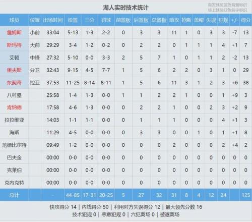 全场结束,湖人125-122险胜快船。东契奇38分6板11助3断、里夫斯29分6板2助2断,詹姆斯和艾顿各得13分。伦纳德31分4板5助、马瑟林26分7板2助。泰伦卢赛后不满判罚:“湖人球员很优秀了,还要骗犯规!这种吹罚真的很难!”