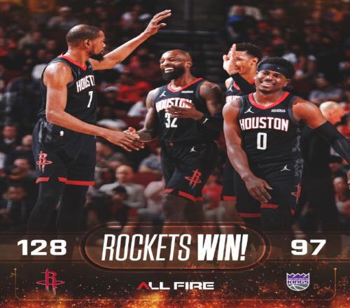 火箭:谢泼德28分3板2助、申京26分13板11助2断3帽、杜兰特21分4板5助、奥科吉14分6板3断、史密斯12分2板3助、伊森8分。