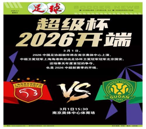 特约撰稿/宋词3月1日下午3点30分,2026中国足协超级杯将在南京奥体中心上演,去年的足协杯冠军北京国安将迎战联赛冠军上海海港。这是国安新帅蒙哥马利上任后的首场正式比赛,同时也是球队冬窗换血后的第一次考试。