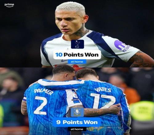 根据统计,本赛季到目前为止,热刺在英超主场比赛中只拿到了10个积分,在英格兰前四级别联赛的92支球队中,只有谢周三的主场积分(9分)比热刺少。