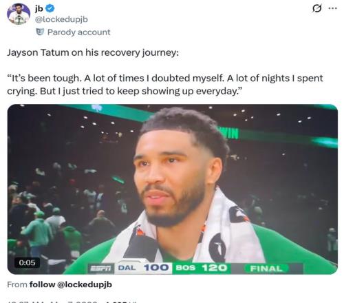赛后谈及复出阶段的艰辛,塔图姆说道:“这一路真的很艰难,很多时候我都在自我怀疑,很多个夜晚我以泪洗面,但我依然坚持每天振作起来,尽自己最大的努力向前迈进,未来还有很长的路要走,但对我而言,本场是踏出的重要一步。”