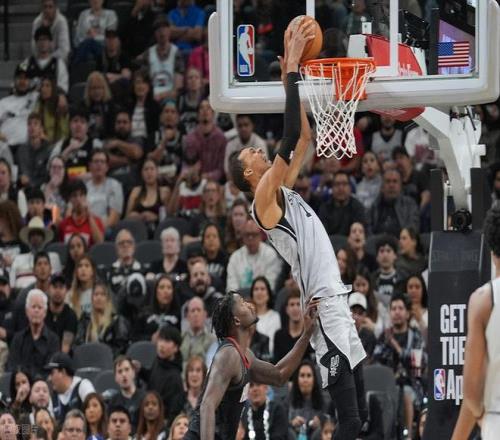 第三节文班依旧予取予求,反击1打4,暴扣2+1简直名场面,然后早早被换下去休息,节末2分多钟再上来,他一上来攻防就帮马刺稳住局面。