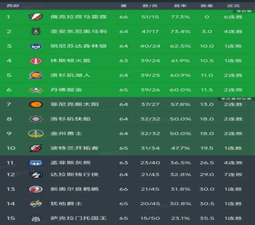 北京时间3月10日,今日的NBA常规赛结束了所有比赛,我们看看西部的最新排名!主要的战况是雷霆129-126绝杀掘金,勇士116-119憾负爵士,快船126-118掀翻尼克斯,灰熊115-123不敌篮网!