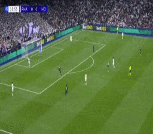 第一球,自开球后到反击皇马仅仅用两次基础的传球机会,库尔图瓦给到巴尔韦德,这球就完事了。曼城的高压逼抢是不是效率太低?对皇马给出这级压力、是不是太自信?