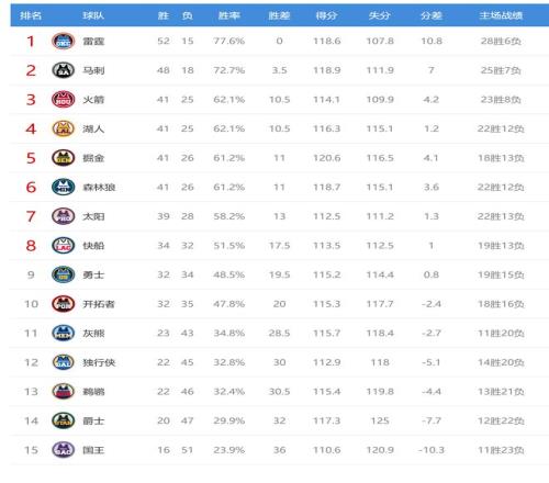 今日比赛后火箭、湖人排名互换,其他西部球队排名不变。