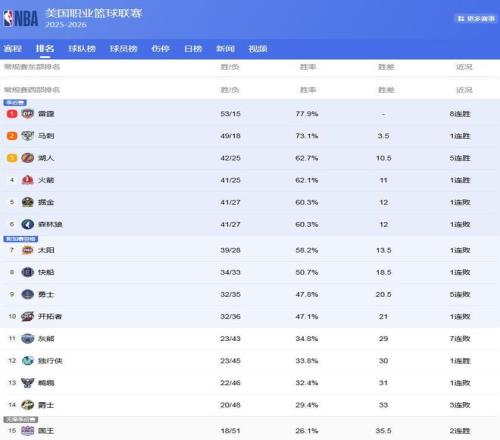 NBA25-26赛季正在火热进行中,而打到现在,各支球队的成功都在15以内了,排名上的争夺也是陷入了白热化,打得好,球队排名提升,打得不好,排名下降,失去季后赛的有力对阵形势,所以这对于各支队伍来说都很重要,竞争也是变得更加激烈,导致NBA排名大变脸:火箭湖人抢第3,3队争西部第5,骑士队第4难保!