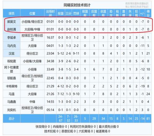 在首节比赛才打1分钟的时候,赵柏清在后场发球,结果,球发给郭昊文的时候,被福建队球员直接抢断,并且上篮得手。就这样,赵柏清的一个失误,直接送给了福建队两分。