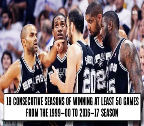 作为对比,马刺的邓肯时代,19个赛季有18个赛季达成了50胜,唯一一个非50胜赛季发生在1998-99缩水赛季,那一年马刺取得了37胜13负,按胜率换算应该是61胜21负(2011-12赛季同样缩水赛季,马刺也有50胜16负)。