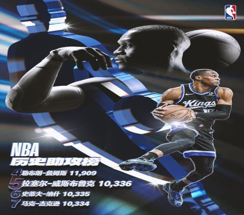 在本场比赛中,威斯布鲁克生涯总助攻数突破10336次,接连超越史蒂夫-纳什和马克-杰克逊,在历史助攻榜上连升两位,位居历史第五。
