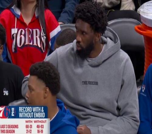 但恩比德缺阵时,球队战绩只有16胜19负,这已经算提高很多了。因为在此前两个赛季,恩比德缺阵时,球队战绩只有32胜74负,妥妥摆烂大队水平!本赛季之所以可以提高很多,因为有埃奇库姆+马克西+格莱姆斯三位年轻人保底,但是,自从进入3月份以后,球队接连不断的伤病,已经彻底压垮这支球队!马克西遭遇右手小拇指扭伤,至少要到4月份回归;乔治被禁赛25场,还有4场才能回归;锋线大将乌布雷肘部伤势,预计也要3月底才能回归。打掘金一战,甚至让“解说员”洛瑞上场打了18分钟,累得够呛!