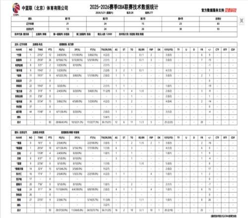 2025-2026赛季CBA常规赛第二十八轮,辽宁本钢对阵北京北汽的比赛于21日晚在辽宁体育馆进行,辽宁本钢队最终以83:93不敌北京北汽。