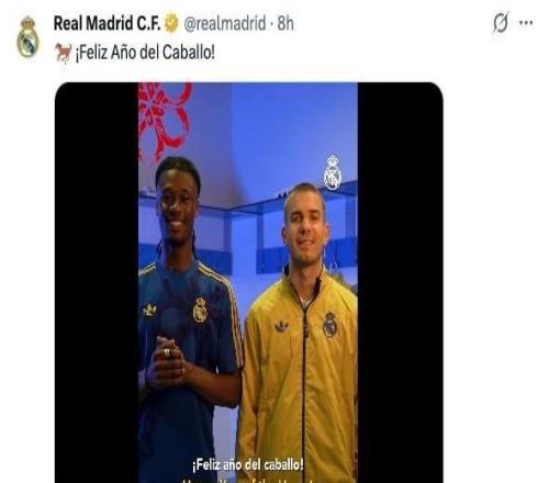皇马晒新年祝福视频,卡马文加特意用中文说“新春快乐”