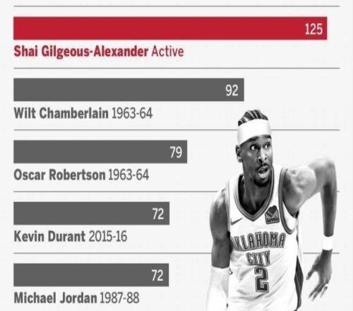 见证历史!SGA明早冲击张伯伦连续126场20+纪录