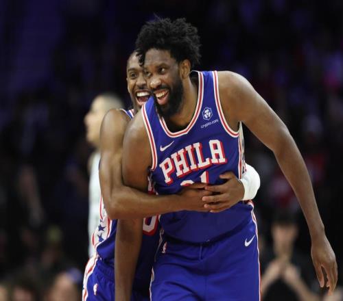 双核轰59+15+13全能数据,恩比德持续暴走梦回巅峰!超级探花埃奇库姆更该夸,高效轰23+7在场净胜27分成76人近10年...