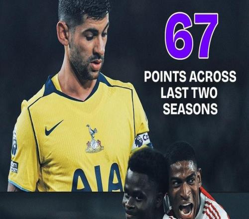 阿森纳本赛季英超31轮拿到70分,超过热刺近两个赛季总和